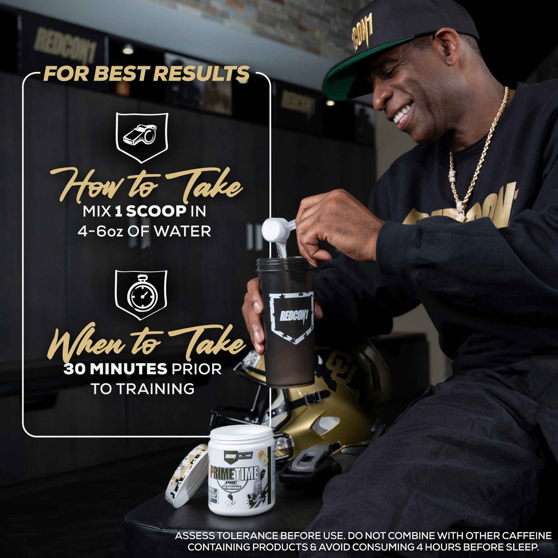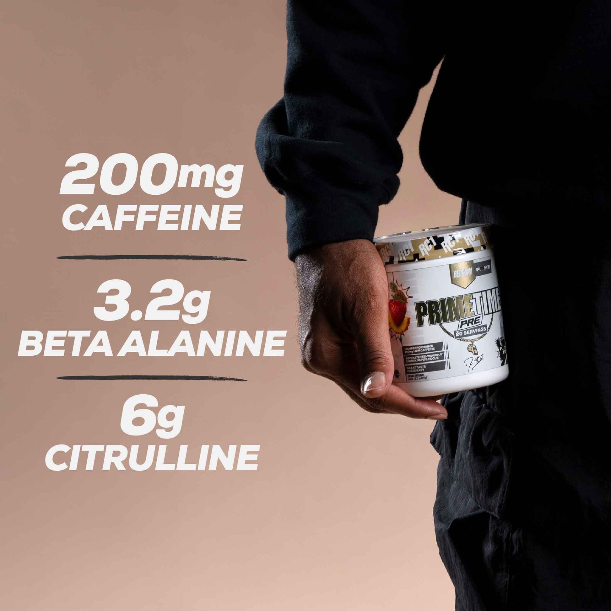 FORMULATED FOR ALL FITNESS LEVELS, PRIME TIME PRE DELIVERS THE ENERGY, PUMPS, AND FOCUS YOU NEED TO POWER THROUGH YOUR WORKOUT WITHOUT HIGH LEVELS OF CAFFEINE, JITTERS, OR CRASH. USING THE SAME COMPLETE FORMULA AS OUR BEST-SELLING PREWORKOUT, TOTAL WAR, PRIME TIME PRE OFFERS A COMBINATION OF PUMP, ENERGY AND FOCUS WITH ONLY 200mg CAFFEINE.WHETHER YOU’RE JUST LOOKING TO START OUT IN THE GYM, OR A PRO LOOKING FOR LESS CAFFEINE, PRIME TIME PRE IS YOUR PERFECT SOLUTION.