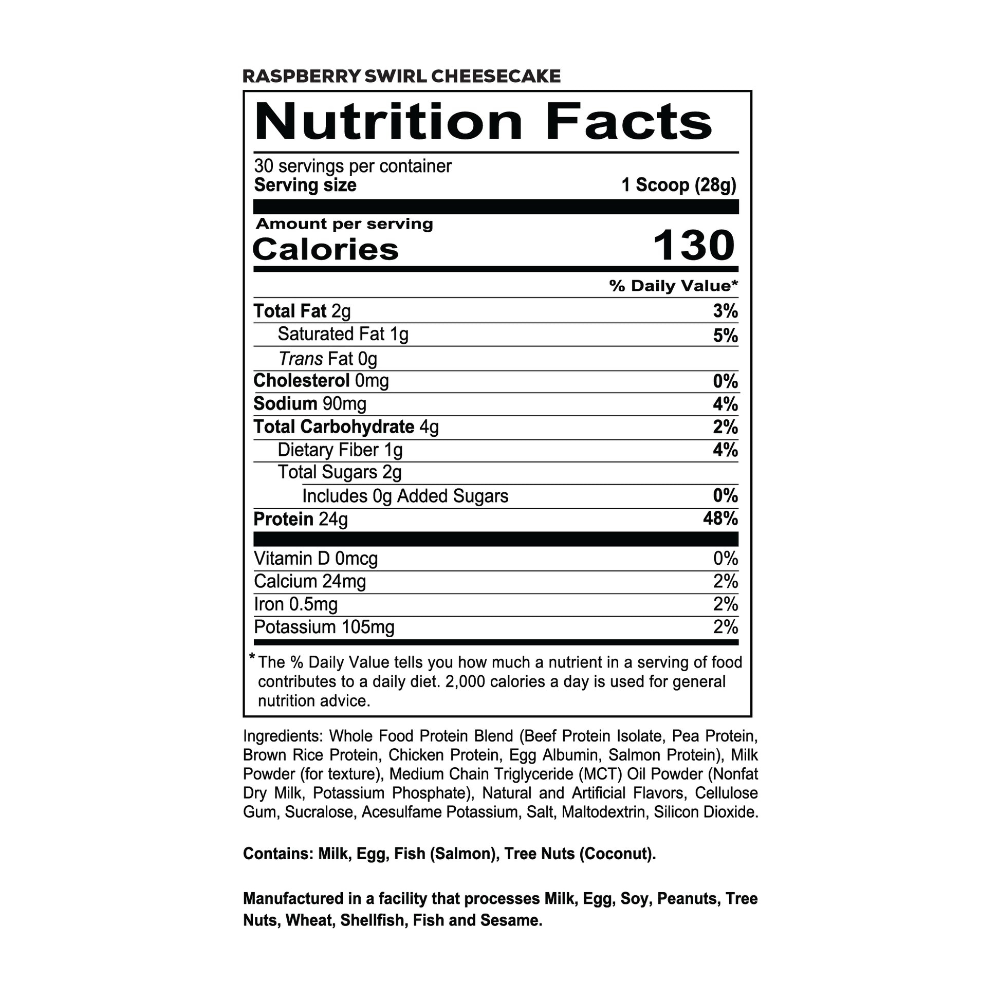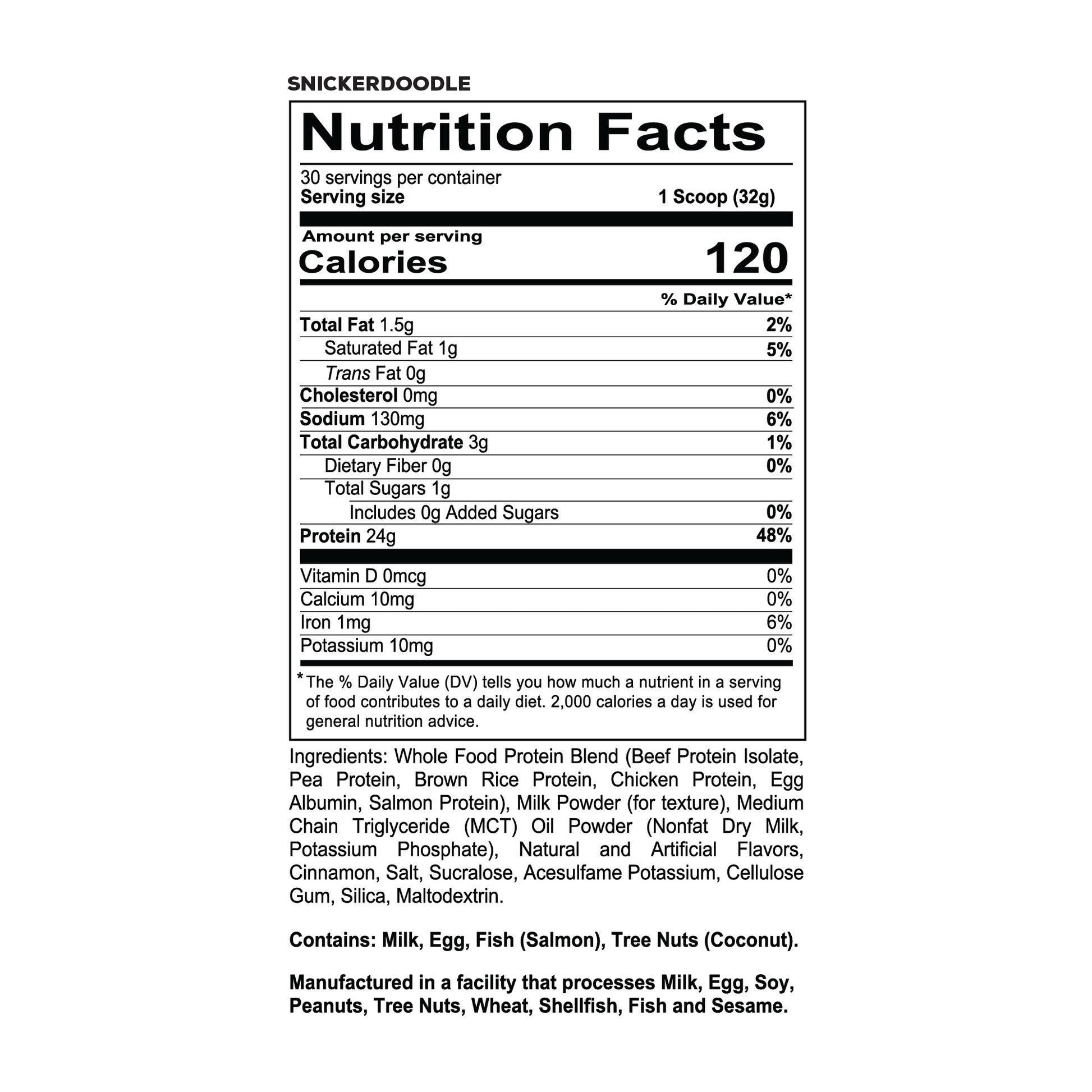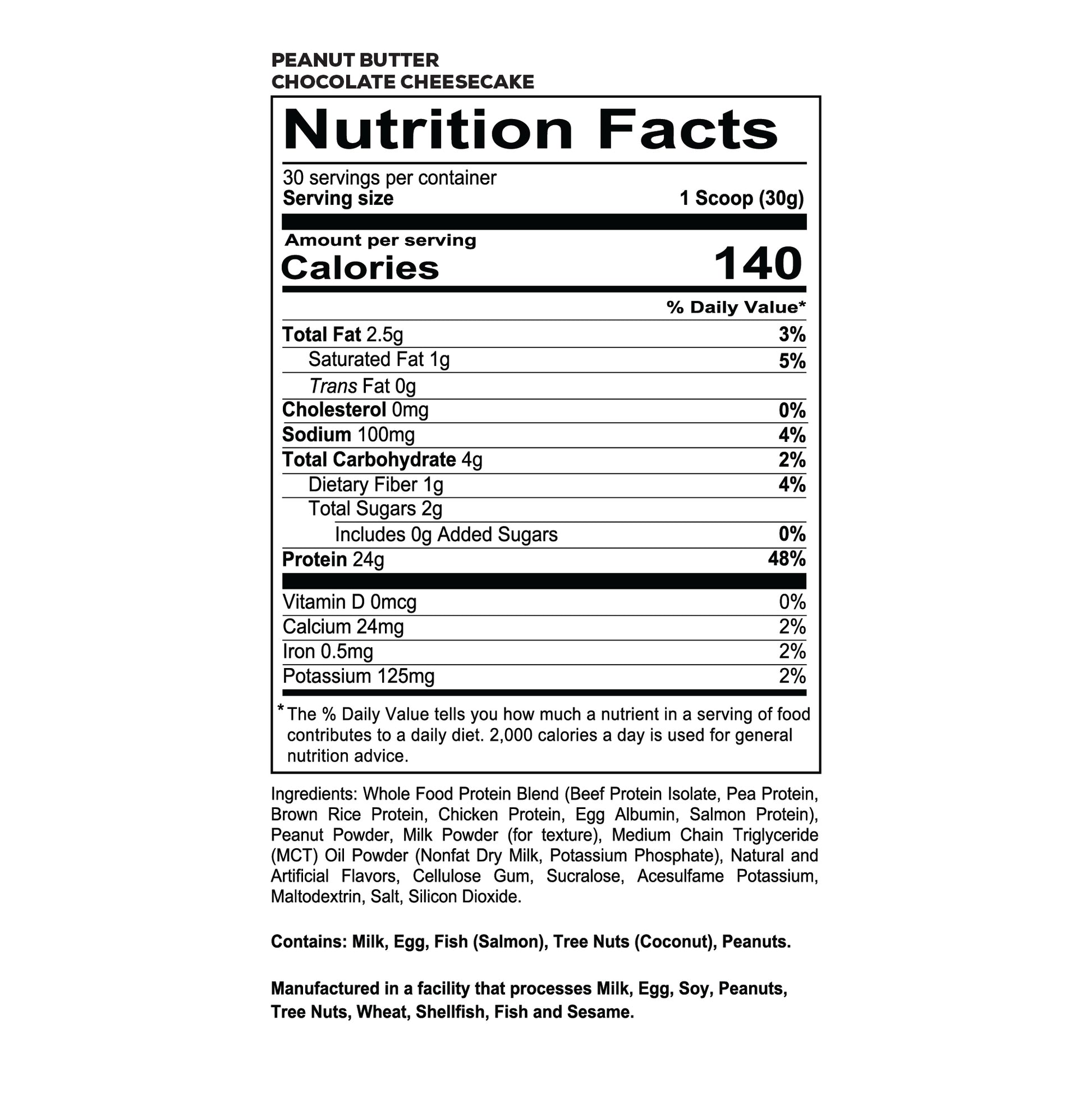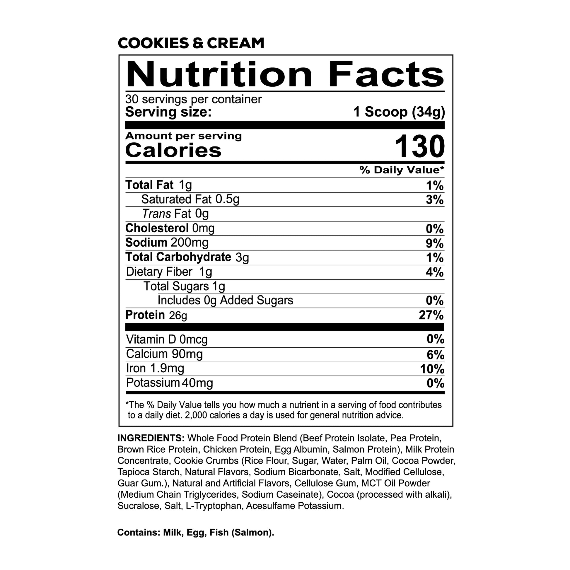 Beef protein blend, salmon protein, chicken protein, egg protein, brown rice protein and pea protein