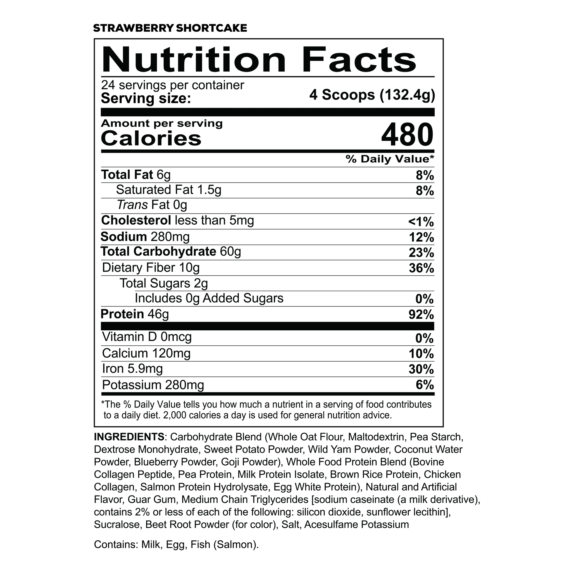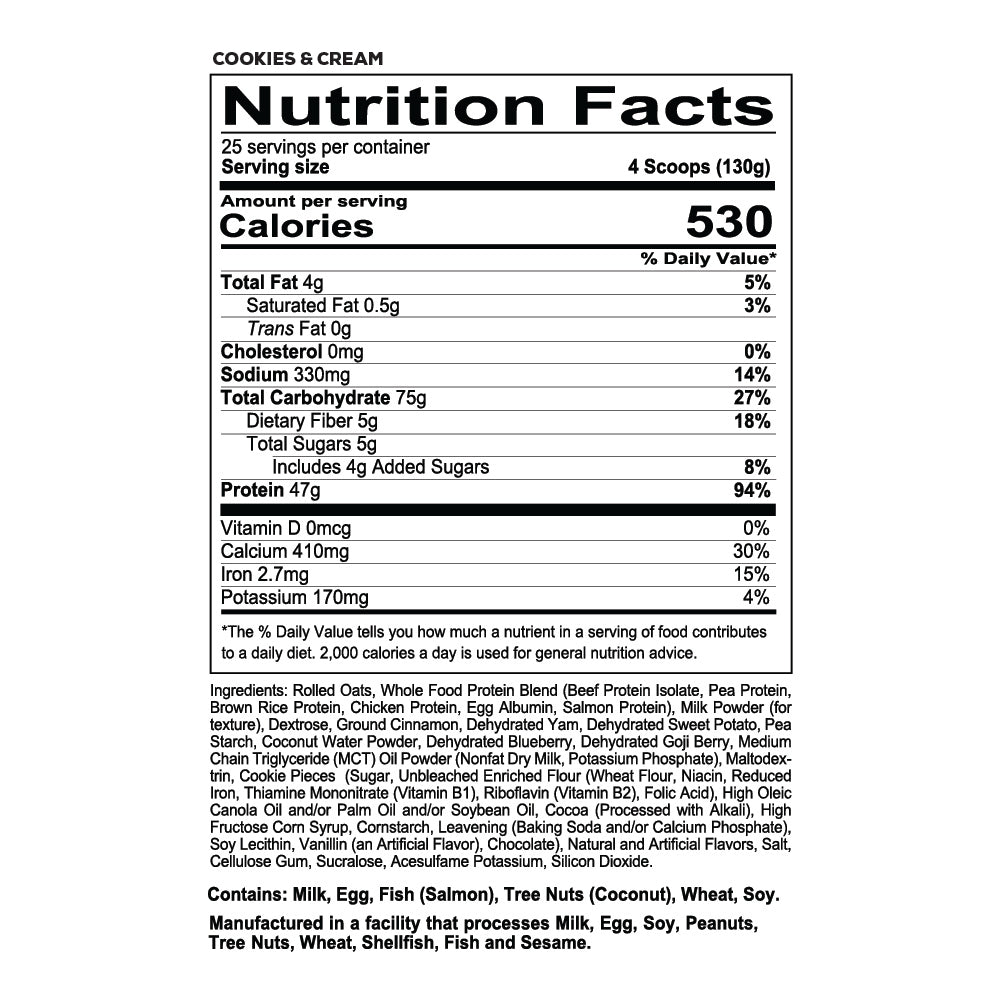 • 47g of protein and 75g of quick & complex carbohydrates per serving in our meal replacement protein powder. • Formulated with 6 whole food protein sources: beef, pea, brown rice, chicken, egg, and salmon protein. • MRE is our best animal-based protein powder yet, made with real ingredients to support muscle growth. • No whey protein for easier digestion and no bloating. • Multiple amino acid profiles to support metabolism, recovery, and growth. • Creamy milkshake taste and texture for a delicious experience. • Mixes easily and tastes great every time.