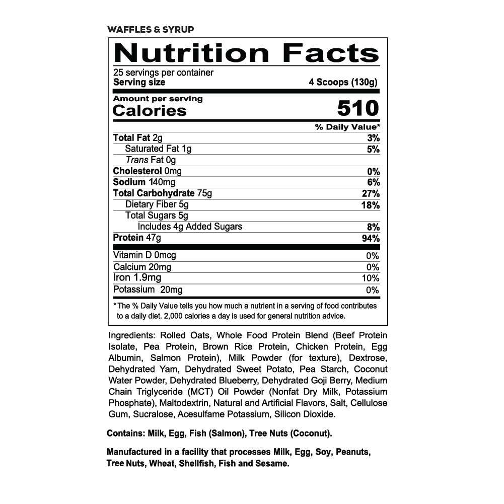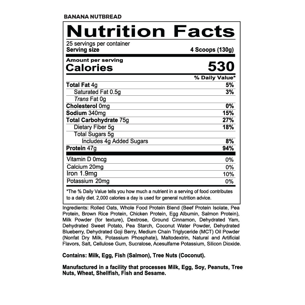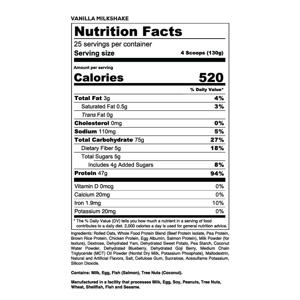 • 47g of protein and 75g of quick & complex carbohydrates per serving in our meal replacement protein powder. • Formulated with 6 whole food protein sources: beef, pea, brown rice, chicken, egg, and salmon protein. • MRE is our best animal-based protein powder yet, made with real ingredients to support muscle growth. • No whey protein for easier digestion and no bloating. • Multiple amino acid profiles to support metabolism, recovery, and growth. • Creamy milkshake taste and texture for a delicious experience. • Mixes easily and tastes great every time.