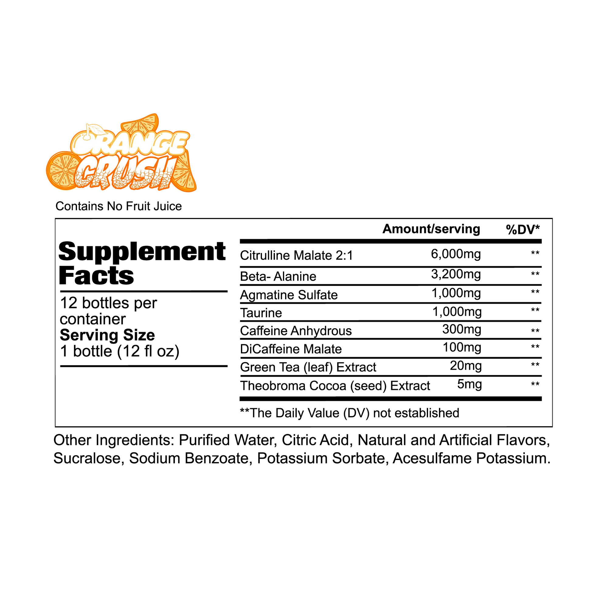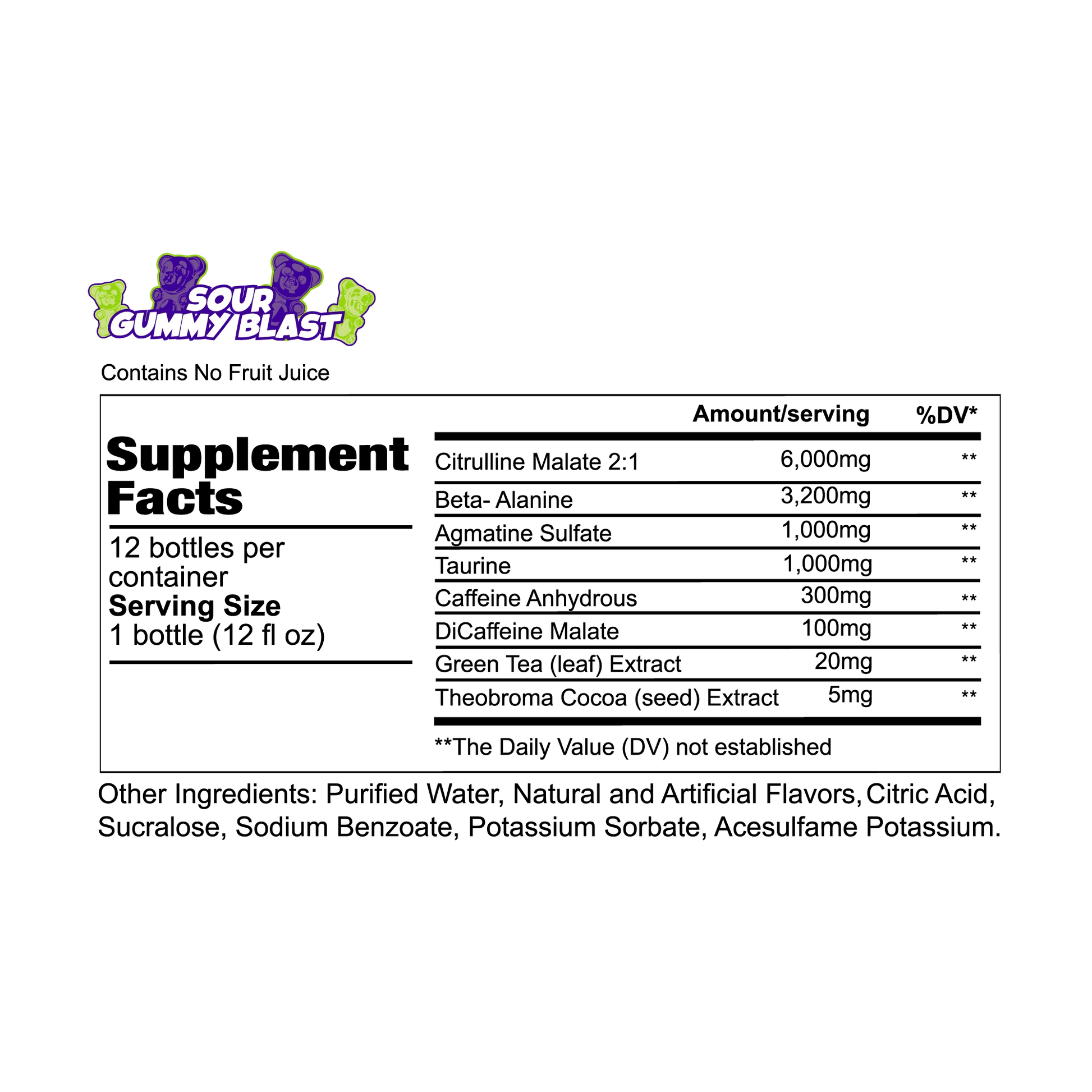 • High-performance energy drink designed for sustained energy and focus. • 200mg of natural caffeine for long-lasting energy without the crash. • 200mg of Alpha GPC nootropic to support energy, mental clarity, and focus. • 1g of L-Carnitine to help optimize the body's ability to burn fat and convert it to energy. • 1g of Taurine to support improved metabolic function and enhance exercise performance.