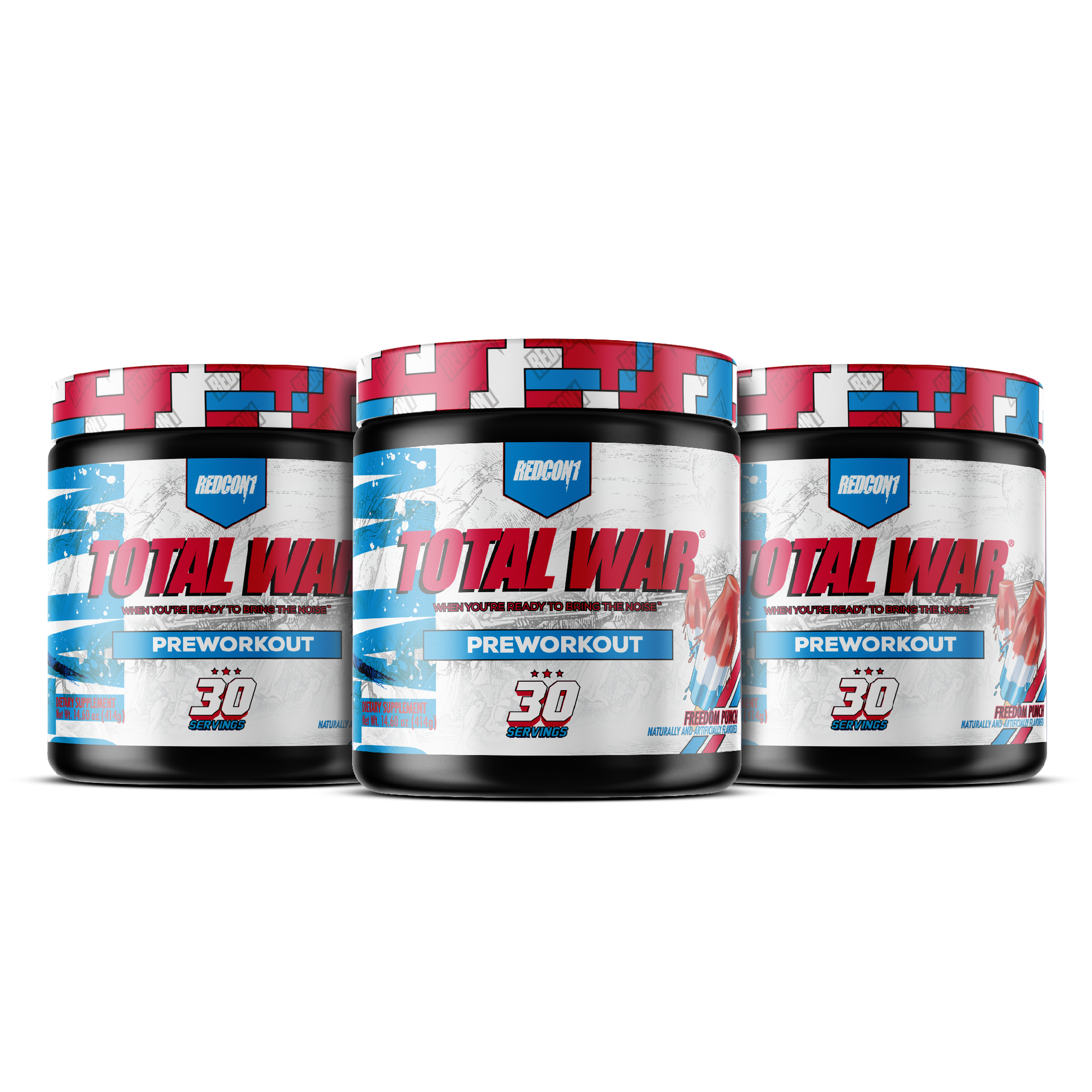 Looking for the ultimate preworkout supplement to take your workouts to the next level? Experience REDCON1’s #1 selling preworkout formula! TOTAL WAR is an all-in-one preworkout powder that packs a powerful combination of endurance, pump, energy and focus factors. With 320mg caffeine, 3.2g beta alanine and 6g citrulline malate at the core of the formula, every scoop of TOTAL WAR is loaded with clinically researched ingredients at efficacious levels so you can train at an elite level, every time.