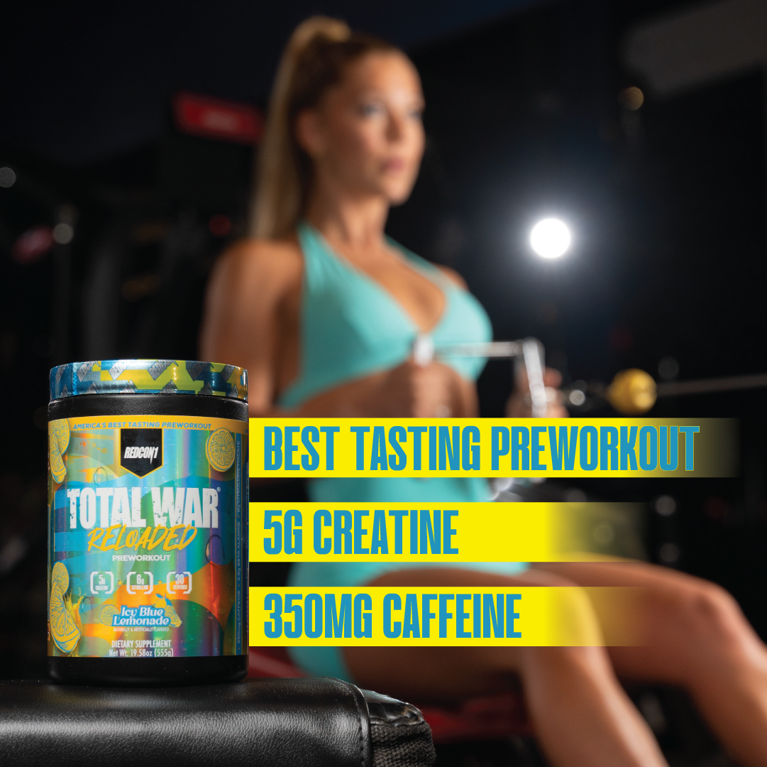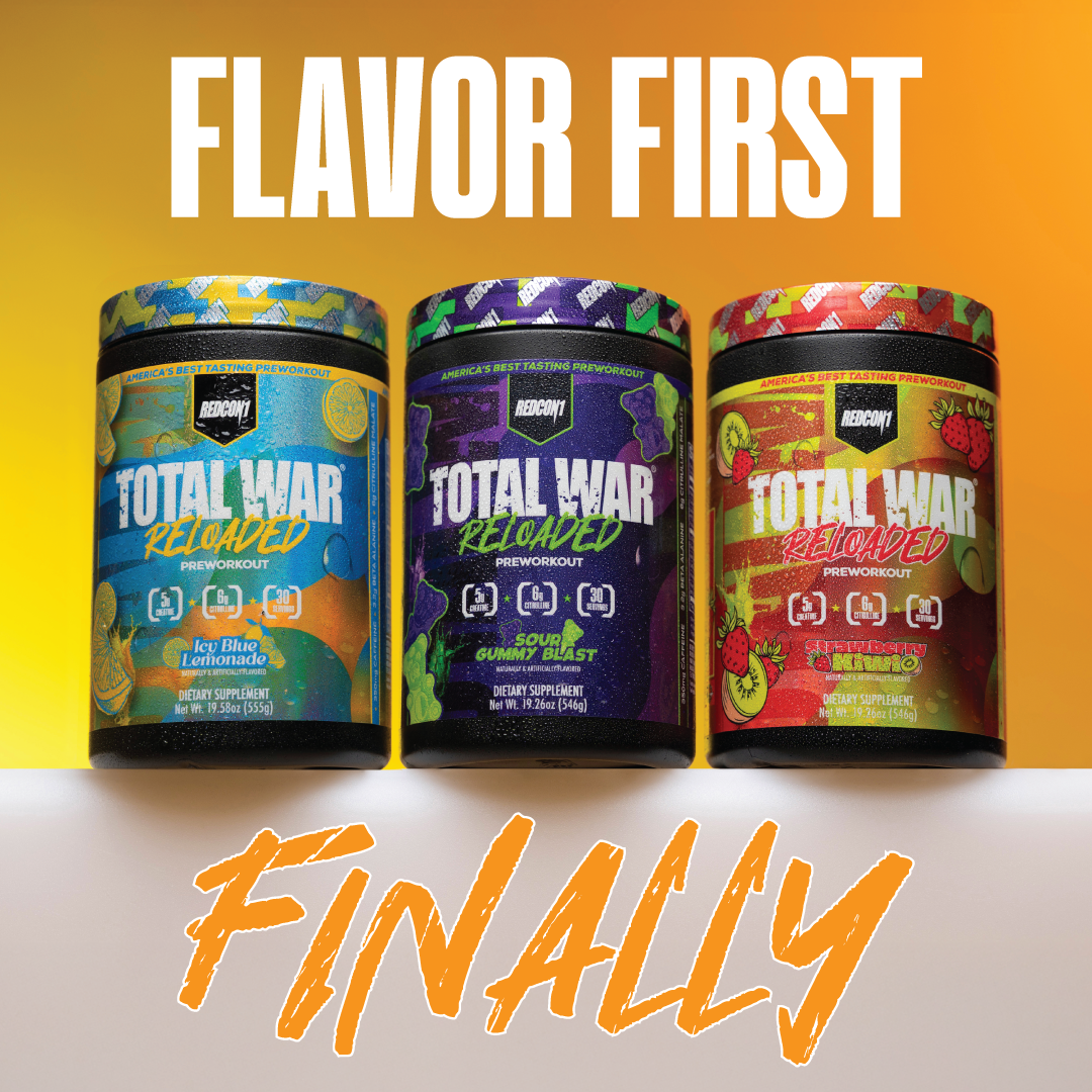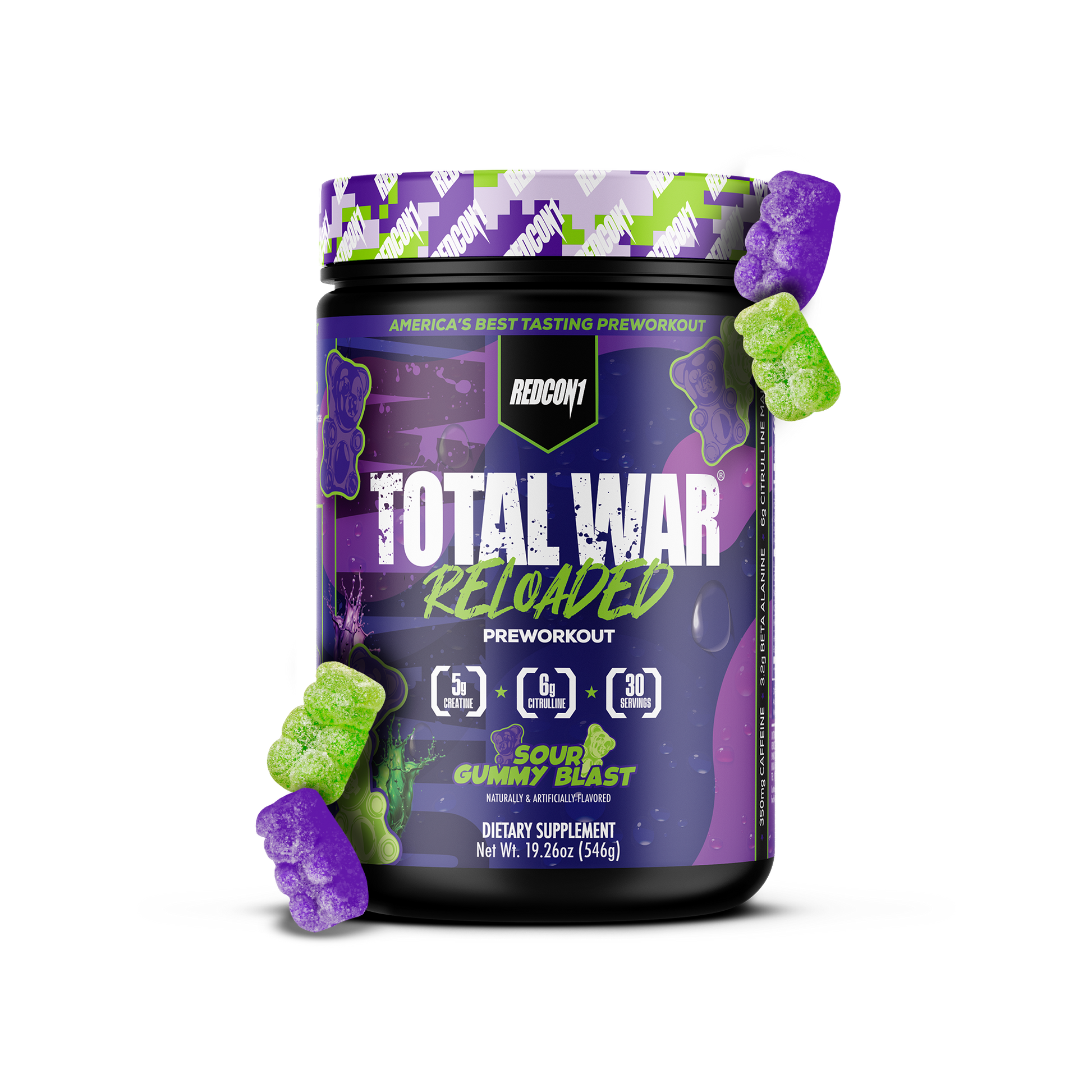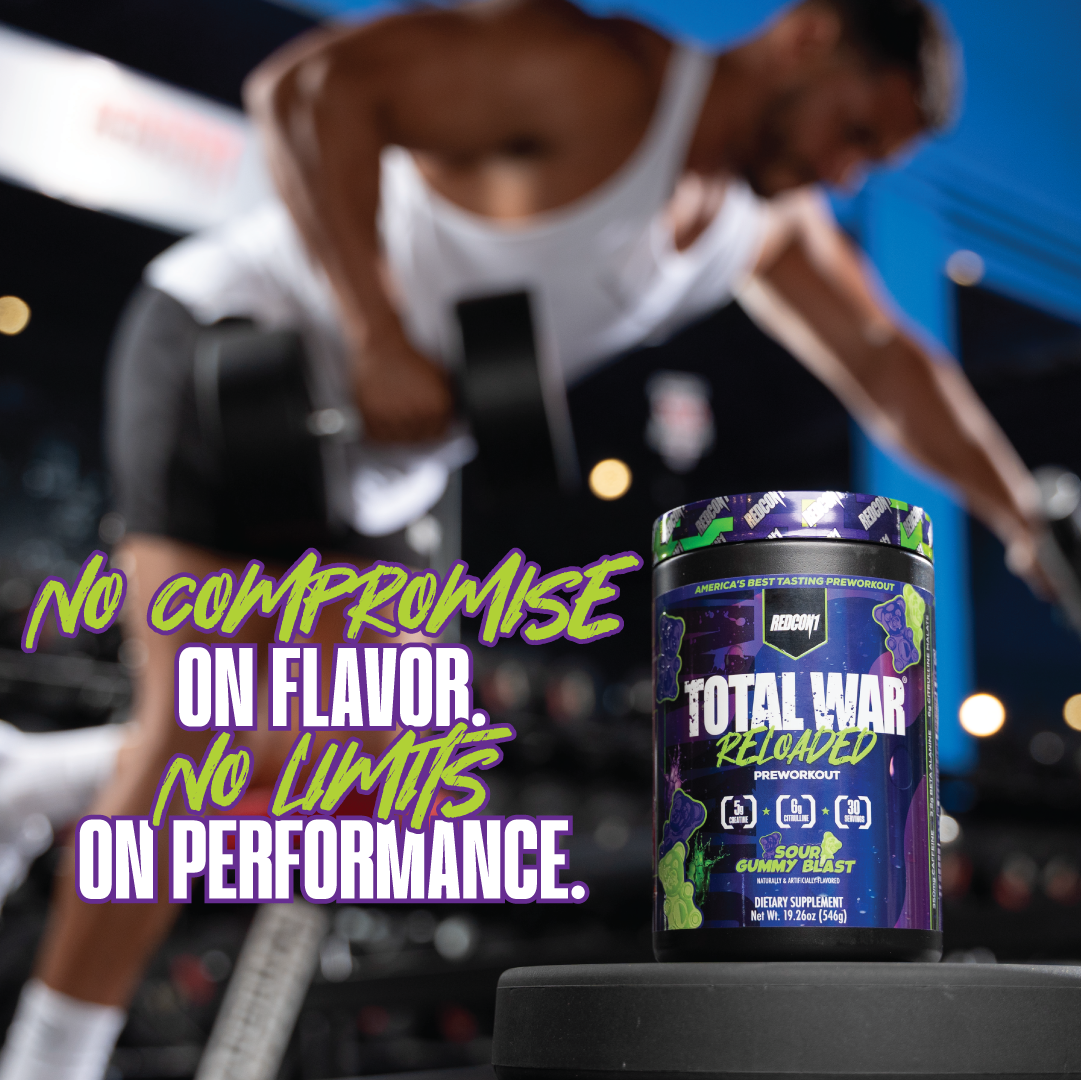 The TOTAL WAR lineup just expanded—TOTAL WAR RELOADED is a new fully loaded preworkout delivering incredible flavor, hard-hitting intensity, and 5g of creatine to support strength and performance. With a powerful blend of energy, endurance, and pump ingredients, it's built to fuel your most demanding training sessions.